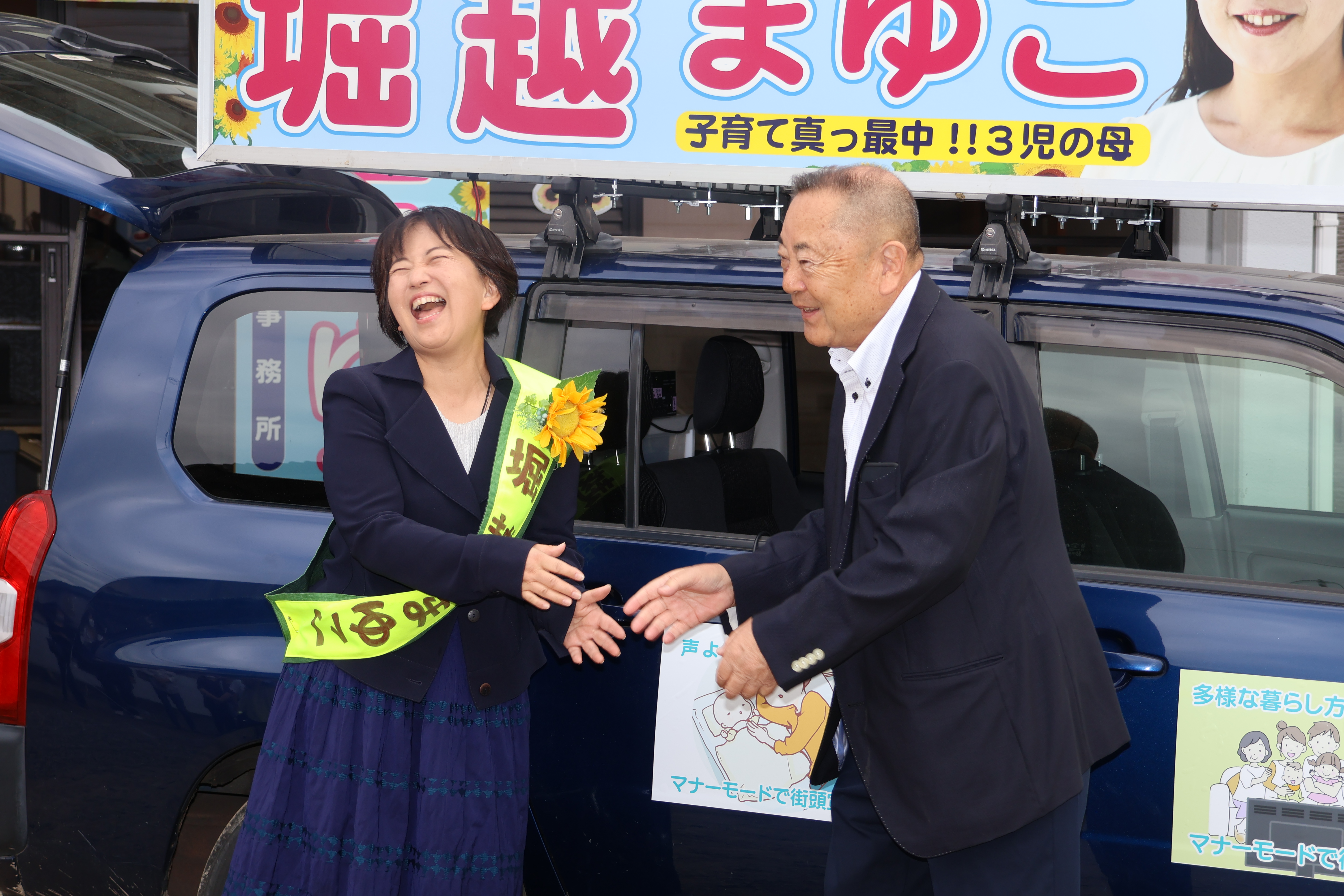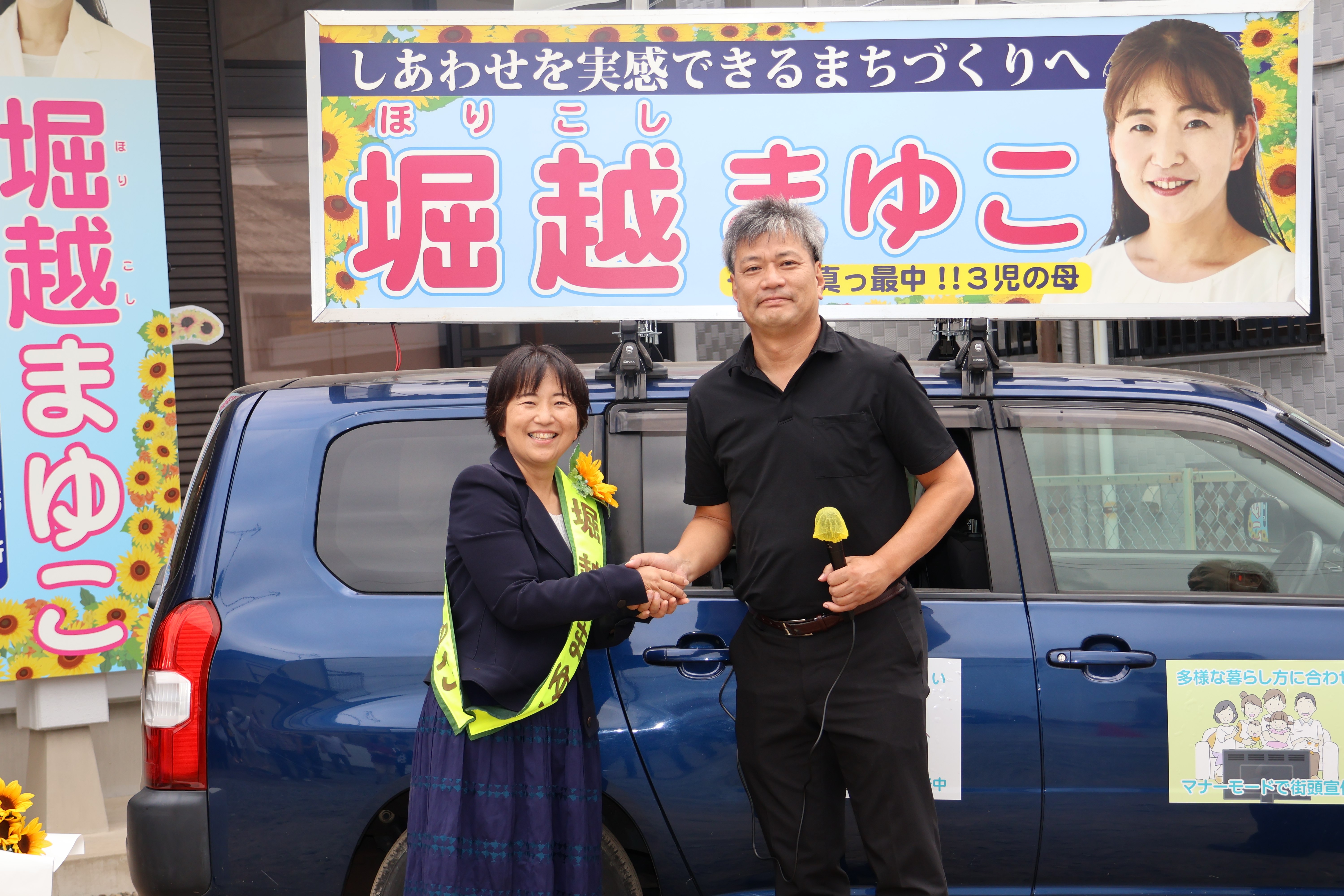 今回の選挙では、堀越候補の配慮により、お子さんの昼寝時間に合わせた「マナーモード街宣」や、声を控えめにして近距離で語りかけるスタイルを採用。地域に寄り添う姿勢が随所に感じられる、まさに堀越さんらしい選挙活動となっています。