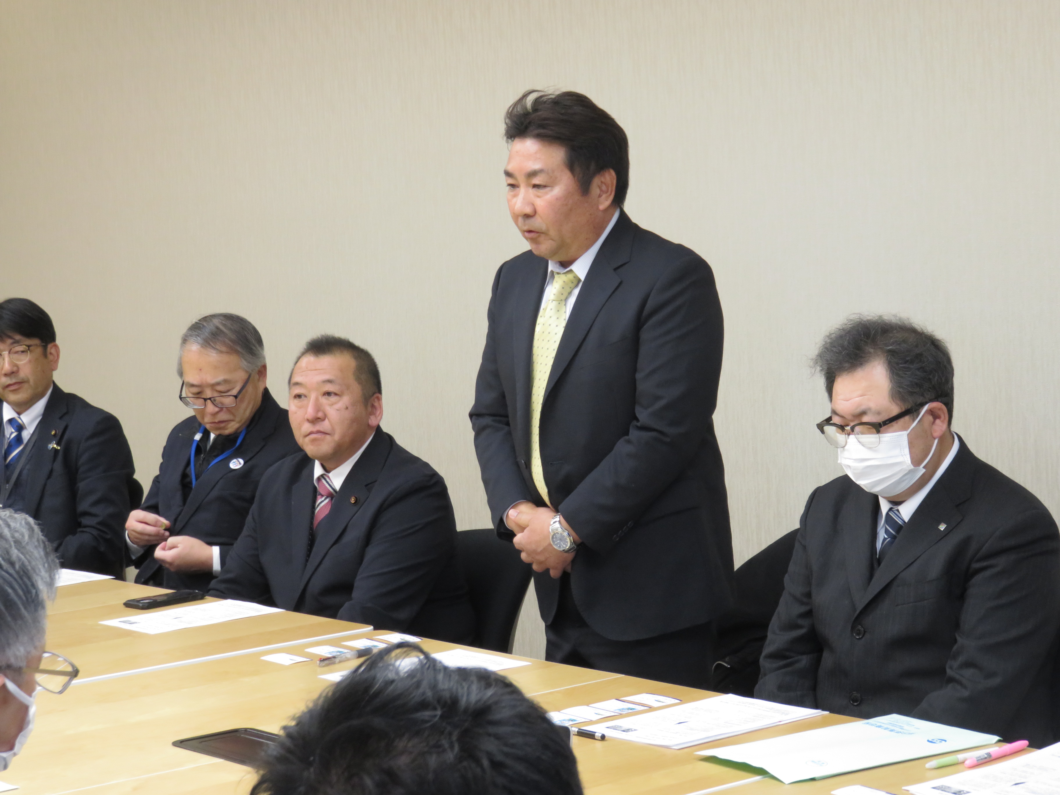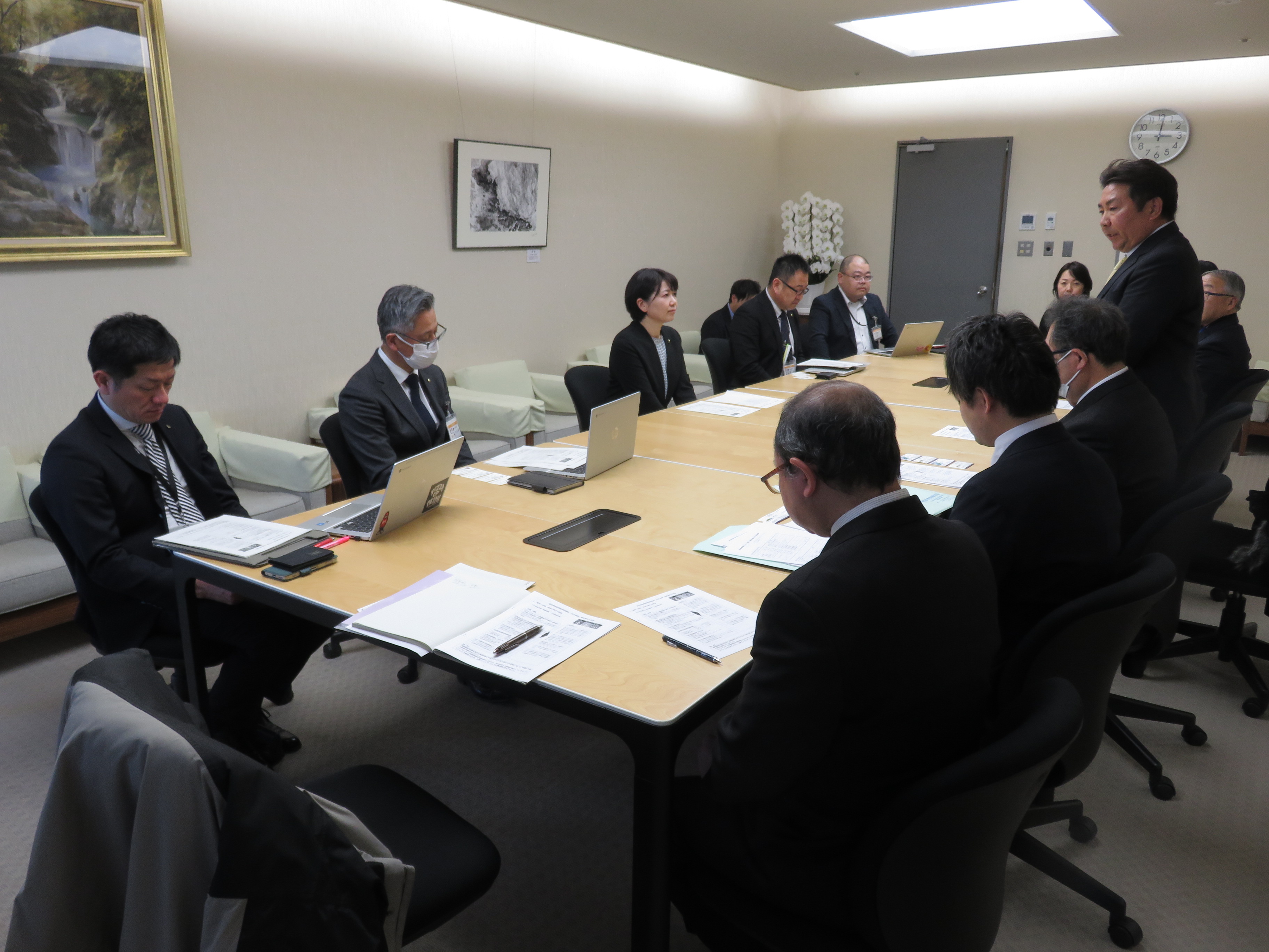 市長の挨拶の後、折笠事務局長から提言の内容説明を行い、その後、小川市長と意見交換を行いました。