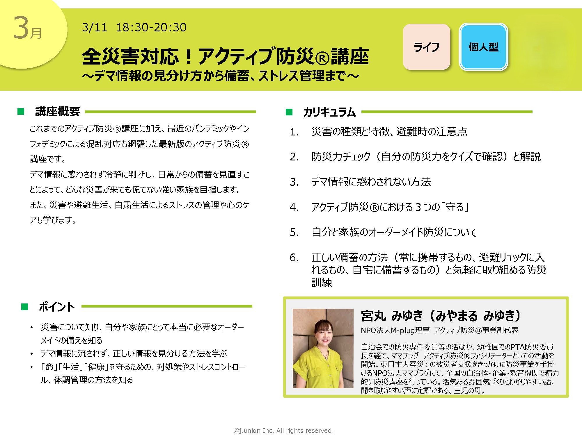 全災害対応!アクティブ防災®講座〜デマ情報の見分け方から備蓄、ストレス管理まで〜 ※チラシ |