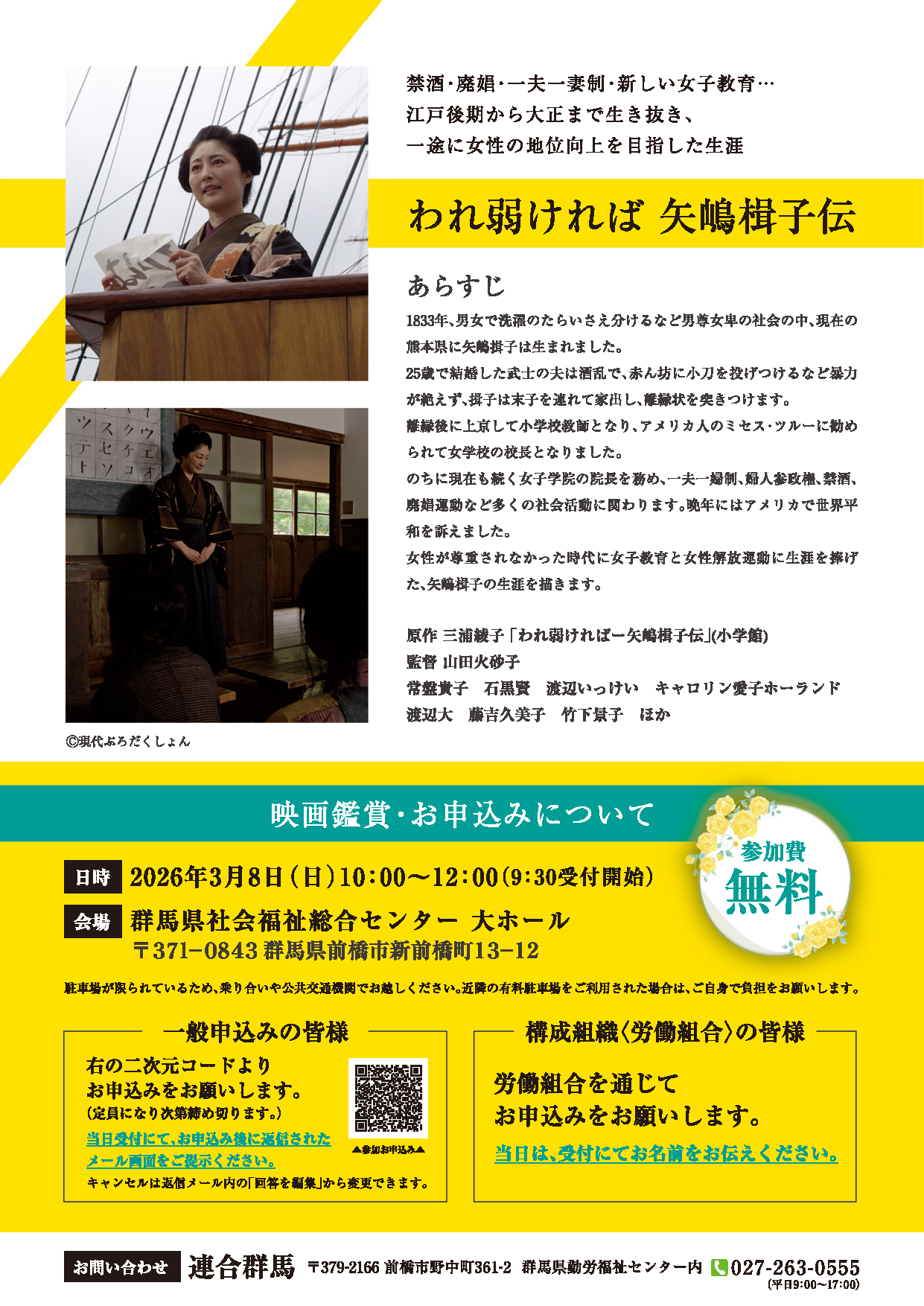 3.8 国際女性デー【われ弱ければ~矢嶋楫子伝~】映画上映会を実施します