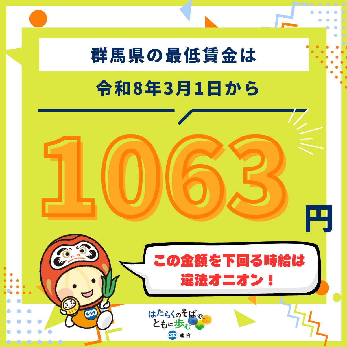 群馬県の最低賃金が2026年3月1日から1,063円に引き上げられます!