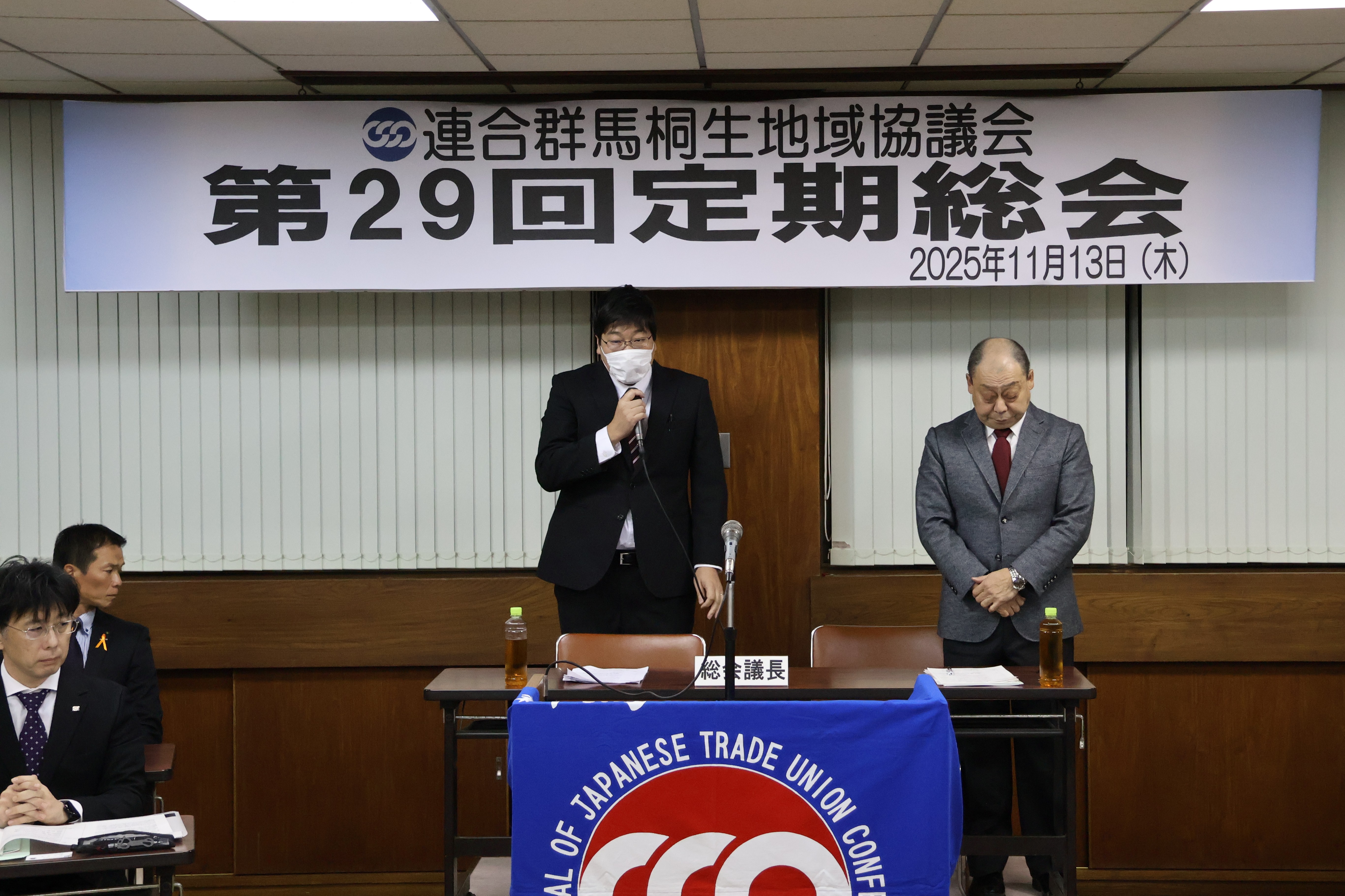 2025年11月13日、桐生市勤労福祉会館において連合群馬桐生地協「第29回定期総会」を開催しました。